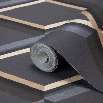 Papier Peint Hicks Hexagon 100 Intisse Motif Geometrique Noir Et Dore Saint Maclou