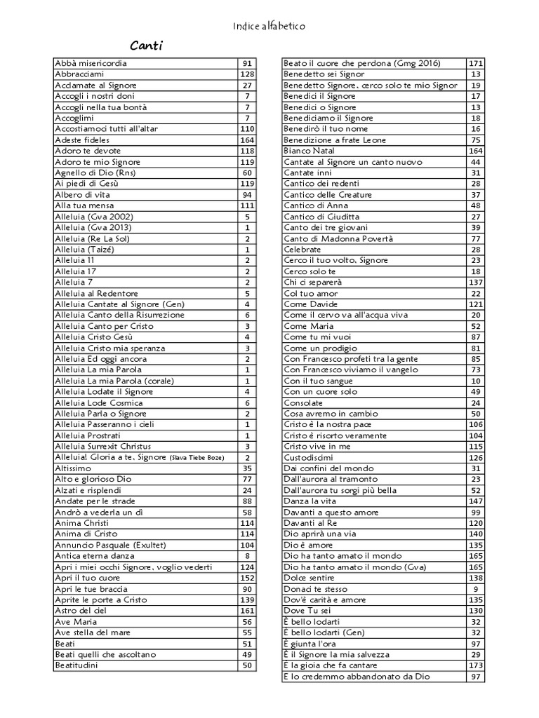 Indice Generale Alcune Parti Della Celebrazione Eucaristica Sequenze Cantici Evangelici Canti Di Ingresso Pdf Free Download